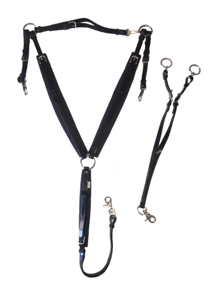 Μπροστινέλα biothane μαζί με μάρτιγκαλ. Η μπροστινέλα διαθέτει μαλακές ενισχύσεις στα σημεία τριβής με το δέρμα του αλόγου.